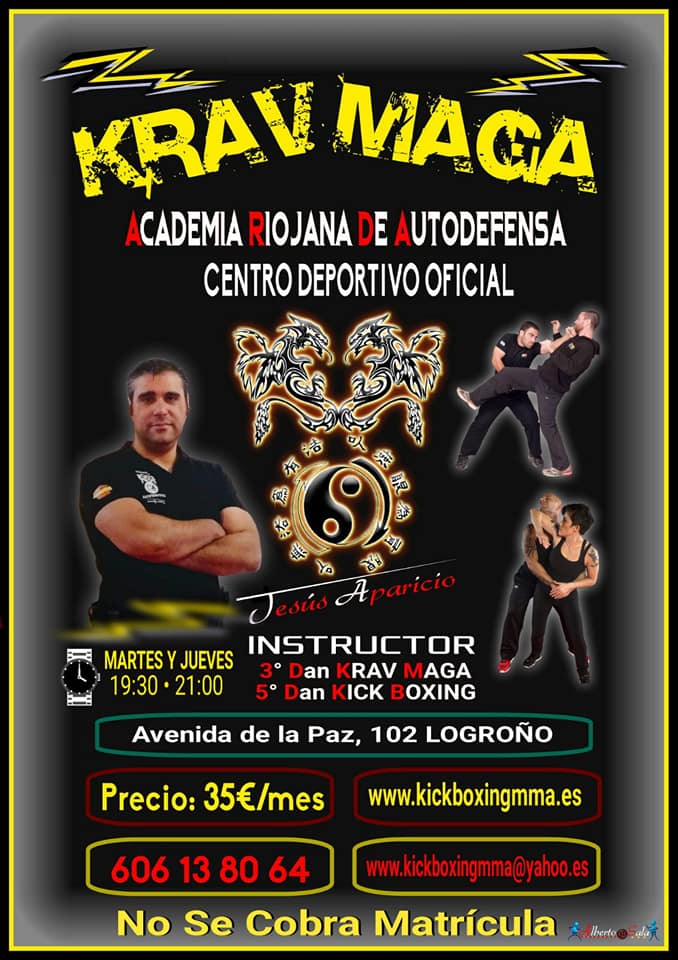 ACADEMIA RIOJANA DE AUTODEFENSA AVENIDA DE LA PAZ 102 - LOGROÑO (LA RIOJA) 606-13-80-64 kickboxingmma@yahoo.es KRAVMAGA - KAPAP KICKBOXING AUTOPROTECCION INFANTIL DEFENSA PERSONAL ANTIBUYING AUTOPROTECCION FEMENINA |