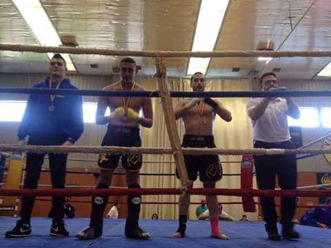 Siguiente pelea semifinal de Fullcontact, el adversario de Carmelo, otro griego, no sube al ring descalificándosele tras los warnings.