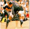 ZANCAJO POR FUERA O TRANQUE POR DETRÁS Movimiento de pierna con tranque por detrás a ras de suelo (pequeño gancho por fuera). Se coloca la pierna izquierda por fuera y detrás de la derecha del contrario, para trabar por detrás realizando una tracción a nivel del talón (zancajo) o quedar apoyada en el suelo (bloqueando) detrás de la derecha del contrario, a la vez que con brazos y pecho empujamos hacia atrás. Variante: Zancajo con cruce. Al movimiento del pie izquierdo del atacante en el Zancajo le sigue un cruce por dentro, al otro pie del contrario.