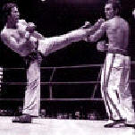 Bruce Lee ya había probado algo parecido al Kick-Boxing en combates de exhibición, utilizando protecciones, desarrollando los golpes a contacto pleno y el combate se realizaba de forma continuo, sin parar después de cada técnica marcada.